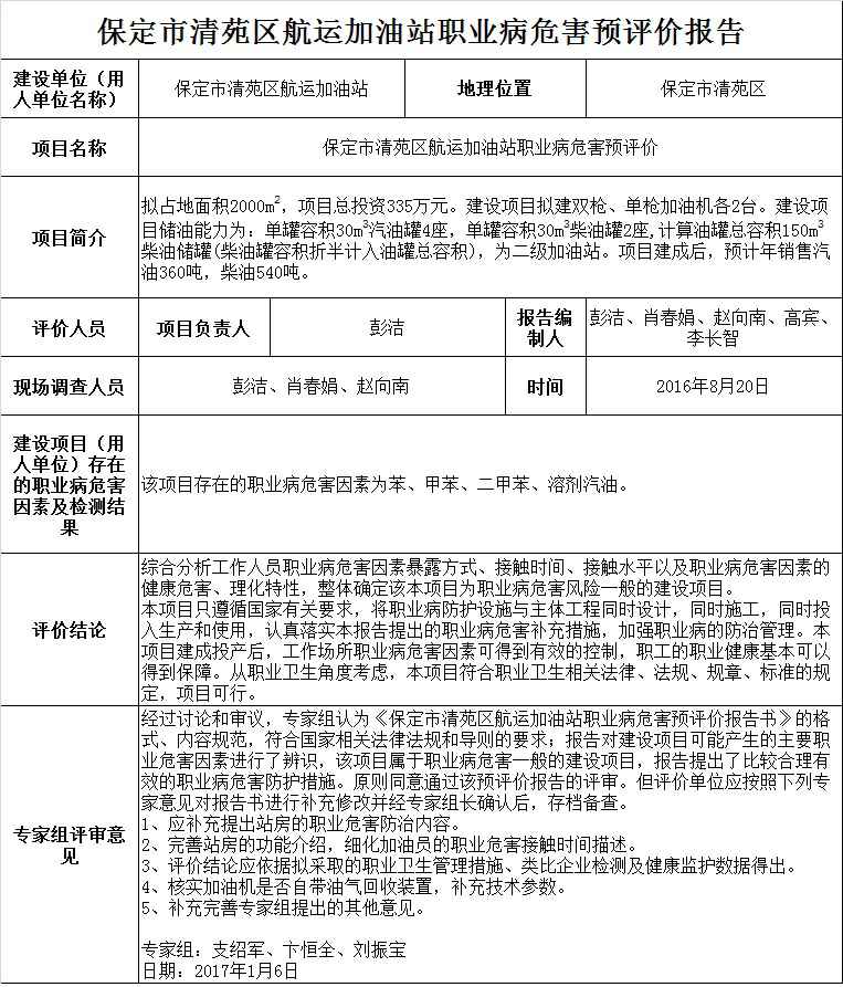 保定市清苑区航运加油站项目职业病危害预评价